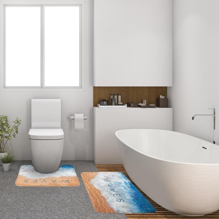 Набор ковриков для ванной Этель «Waves» 2 шт, 80×50 см, 50×40 см, велюр