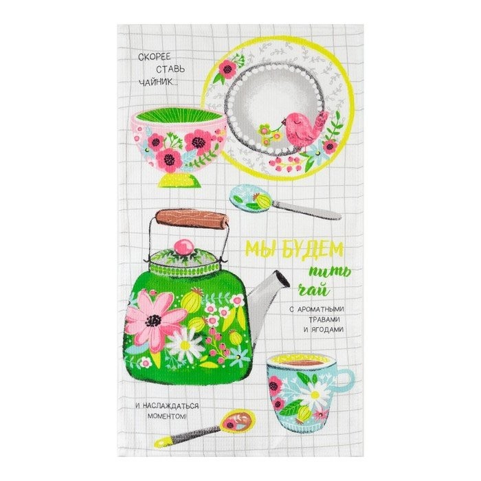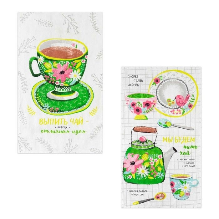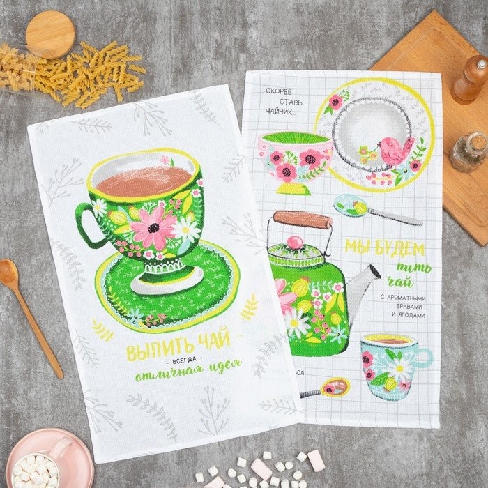 Набор кухонных полотенец Доляна «Чаепитие», 35х60см-2 шт, 100% хл, вафля 160 г/м2