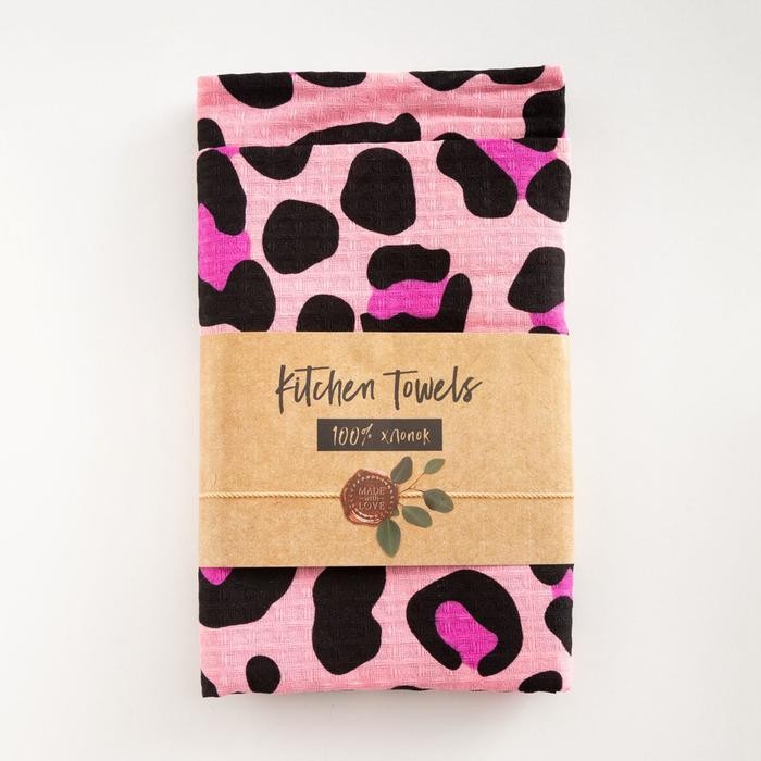 Набор кух.полотенец Доляна Leopard 40х73см-2шт., 100% хл, вафля, 160 гр/м2