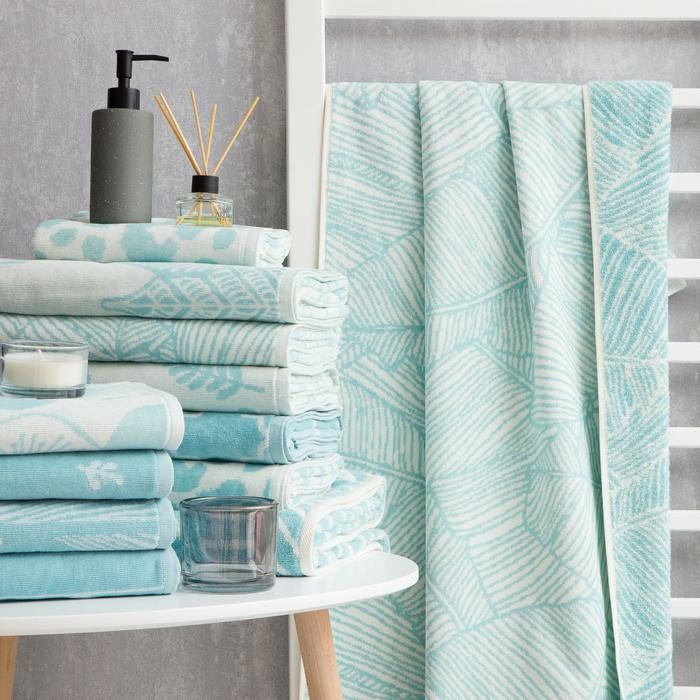 Полотенце махровое Этель Foglie бирюза, 70×130 см, 100% хл, велюр, 420 гр/м2