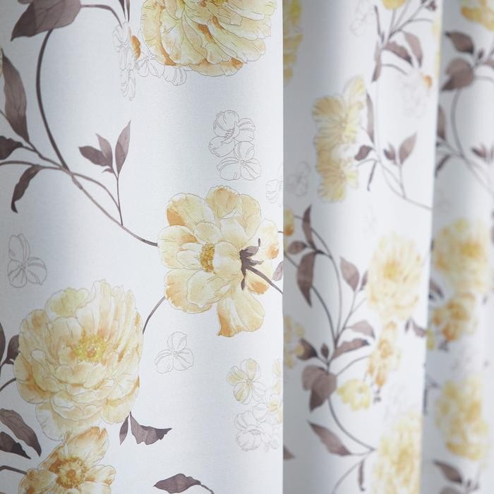 Штора портьерная блэкаут Японский пион 135×260 см, жёлтый, пэ 100%