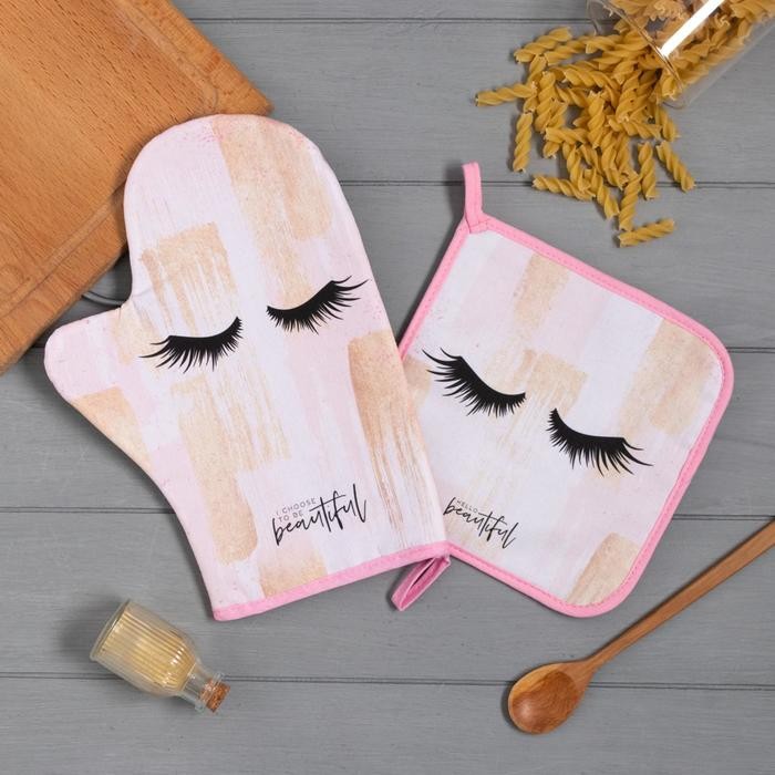 Набор Кухонный «Hello beautiful», варежка-прихватка 20х28см, прихватка 19х19см, 100% хл