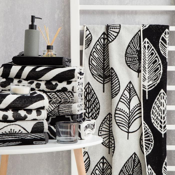 Полотенце махровое Этель Foliage чёрный, 70×130 см, 100% хл, велюр, 420 гр/м2