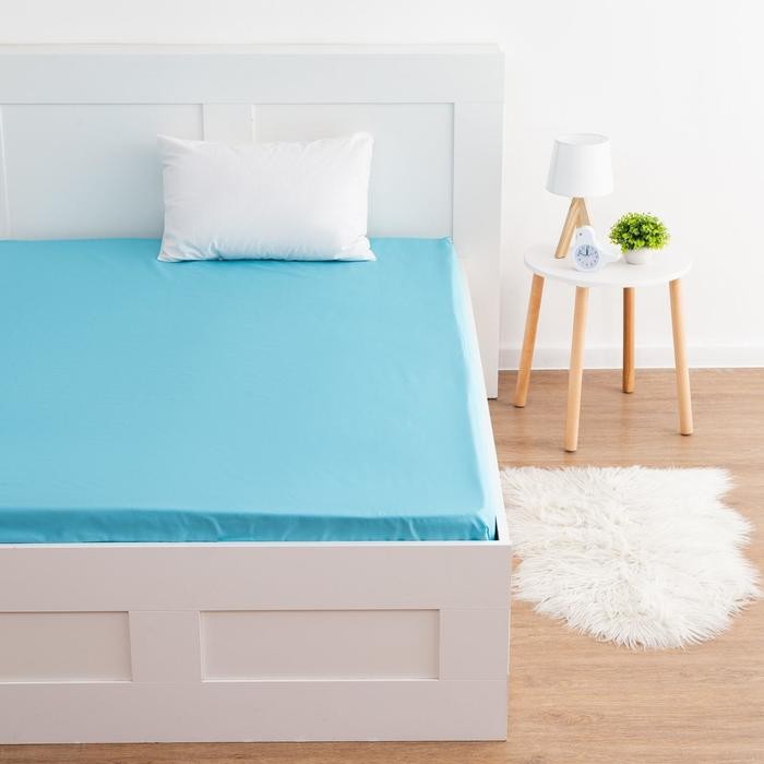 Простыня на резинке Этель 140*200*25 см, цв. голубой, 100% хлопок, мако-сатин, 128 г/м²