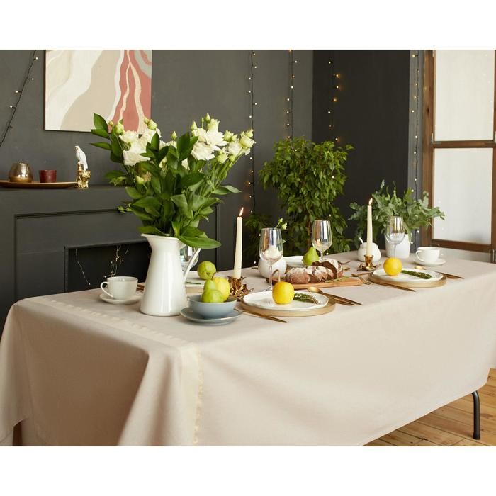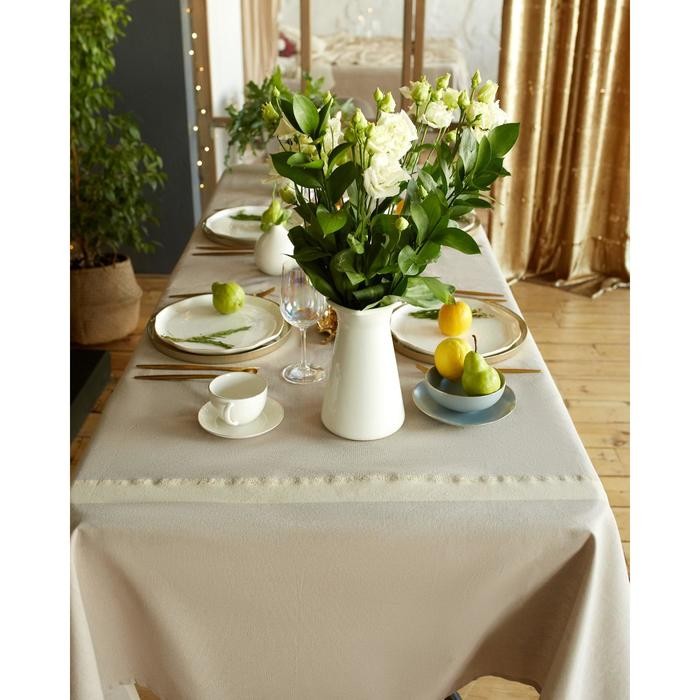 Скатерть Этель 240×165 см, цв. кофейный с золотой нитью, 100% хлопок, 163 г/м2