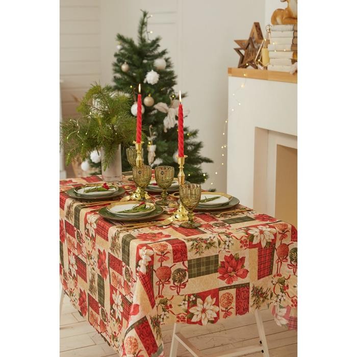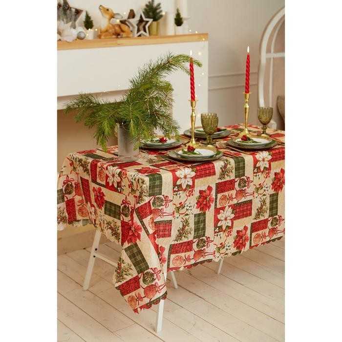 Скатерть Доляна «Новый год: Новогодние игрушки» 145*180 +/- 2 см, 100% п/э