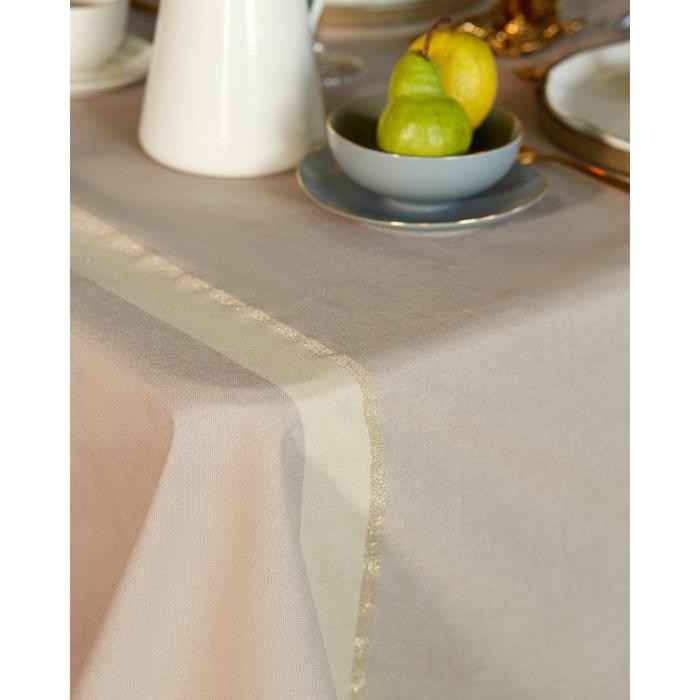 Скатерть «Этель» 110×165 см, цв. кофейный с золотой нитью, 100% хлопок, 163 г/м2