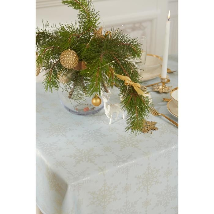 Скатерть Этель «Новый год: Снежинки» цвет голубой, 142*220 +/-3 см, 115 ±10 гр, 100% п/э