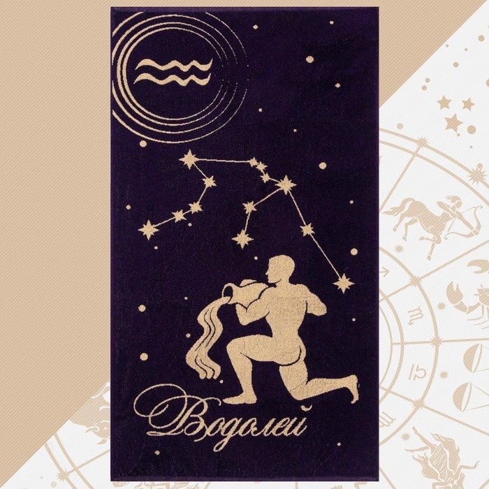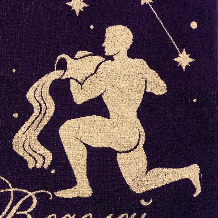 Полотенце махровое Этель «Знаки зодиака: Водолей» фиолетовый, 67×130 см, 100% хлопок, 420гр/м2
