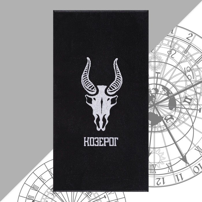 Полотенце махровое Этель «Знаки зодиака: Козерог» чёрный, 67×130 см, 420 гр/м2, 100% хлопок