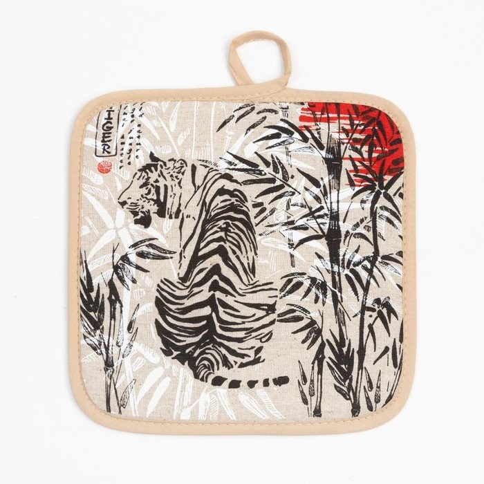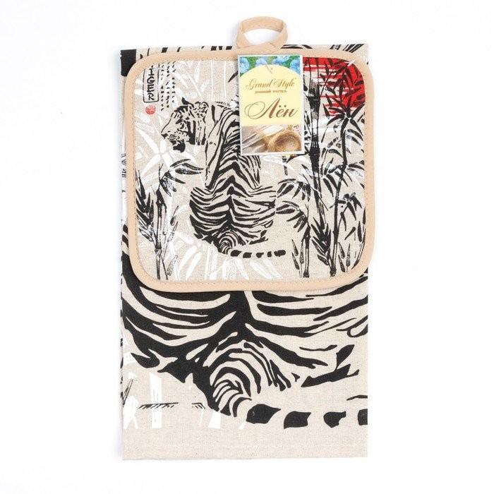 Кухонный набор Тигр Япония (полотенце 45×60+прихватка 18×18) лен 50%, хл 50%, 160г/м2