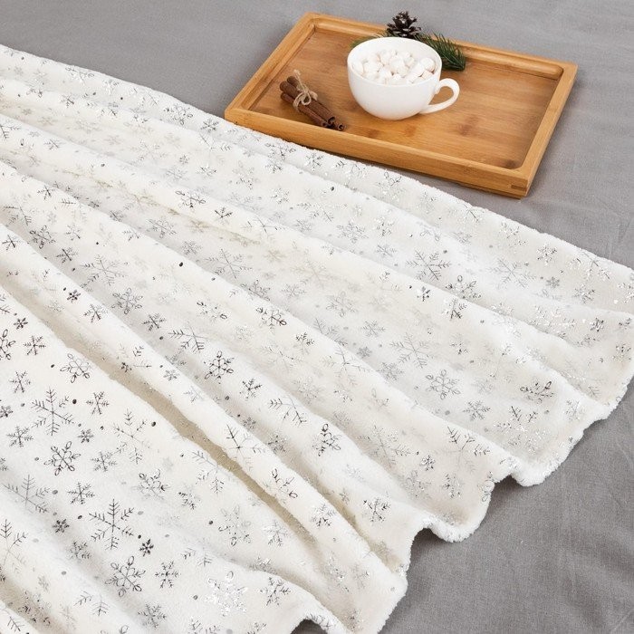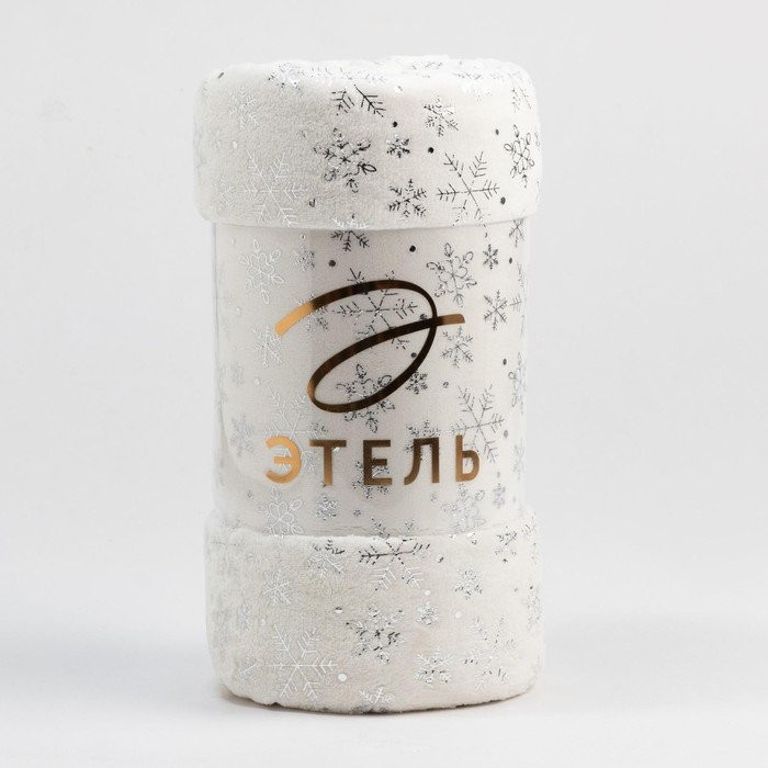 Плед Этель «Серебряные снежинки» 180*200 см,100% п/э, корал-флис 220 гр/м2