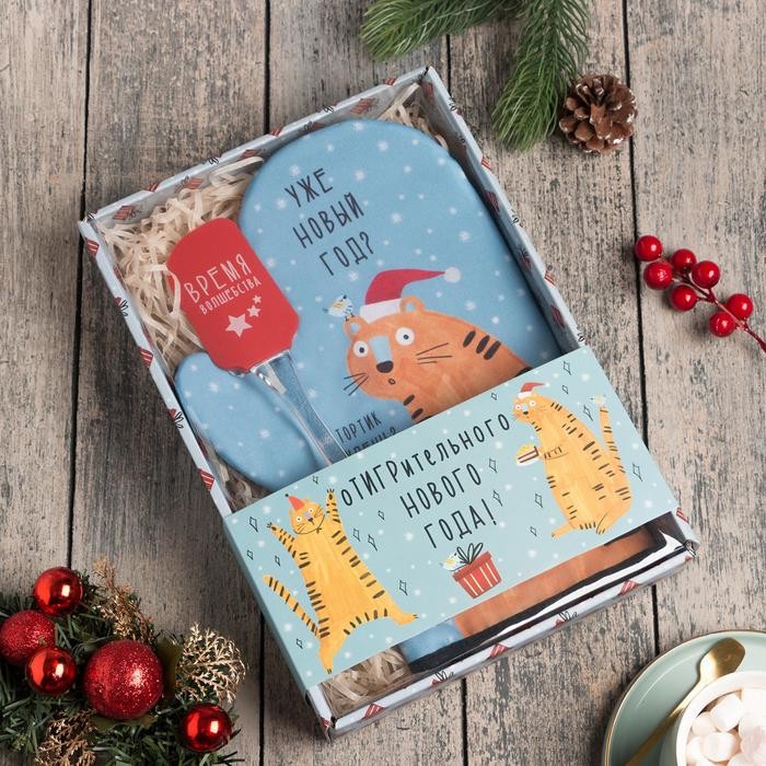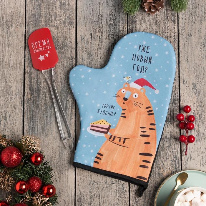 Новогодний набор подарочный « Отигрительного нового года» варежка-прихватка, лопатка силикон