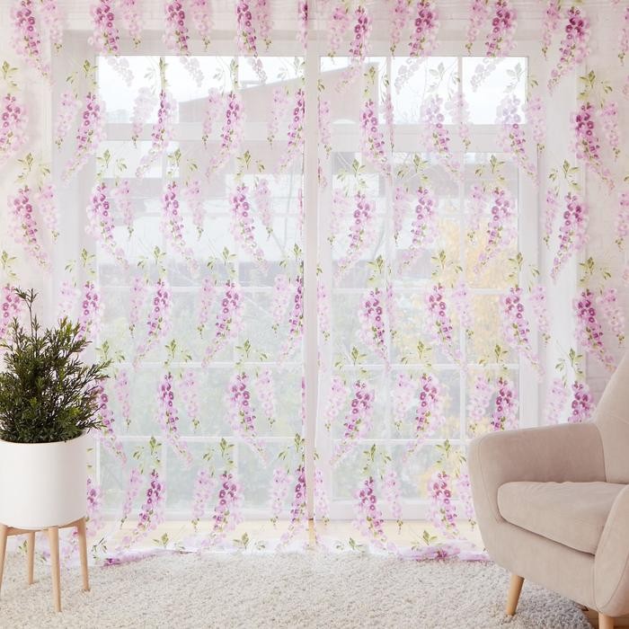 Тюль «Этель"Виноградная лоза (лиловый) б/ утяжелителя, ширина 260 см, высота 250 см