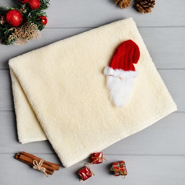 Подарочное полотенце с игрушкой Этель «Дед Мороз» 50*90 см, цв.молочный, 100% хл, 320г/м2