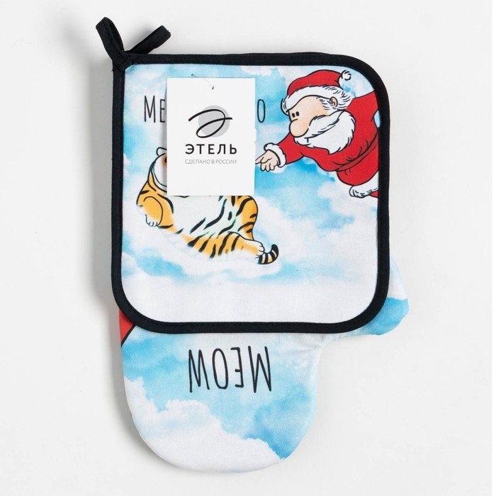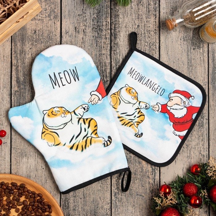 Набор кухонный «Новый год: Meowlangelo» варежка-прихватка 20х28см, прихватка 19х19см,100% хл