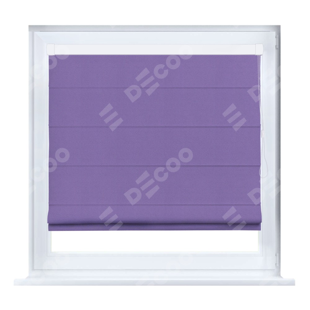 Римская штора кассетного типа, производителя «Cortin», устанавливается только на пластиковые окна и прилегает к стеклопакету, пошита из ткани блэкаут однотонный сиреневый, артикул 88305.