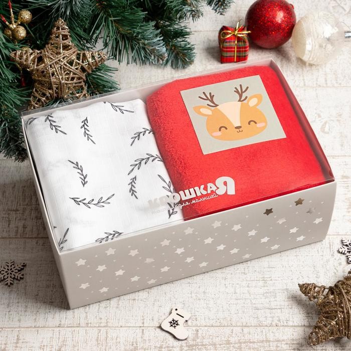 Подарочный набор Крошка Я «Олененок», плед 90х90см, пелёнка муслиновая 75х120см
