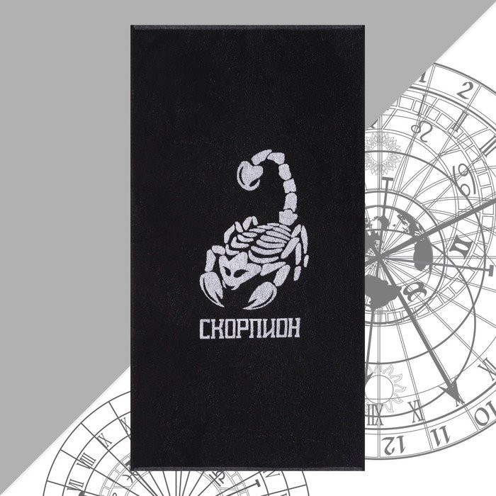 Полотенце махровое Этель «Знаки зодиака: Скорпион» чёрный, 67×130 см, 420 гр/м2, 100% хлопок