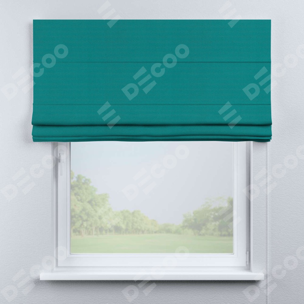 Римская штора производителя «Cortin», используется для проёма, пошита из ткани блэкаут однотонный бирюзовый, артикул ткани 88297. Имеет универсальный механизм и подходит для монтажа: на потолок, на стену и в нишу.