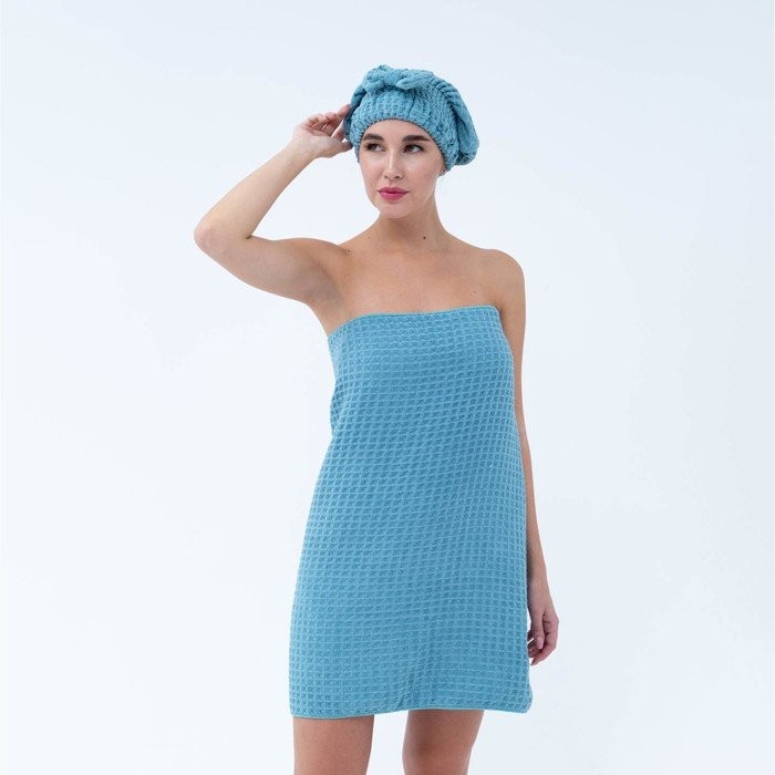 Набор для бани и ванной Этель «Вафля» полотенце 70*140 см+чалма 21*25 см, цв.синий