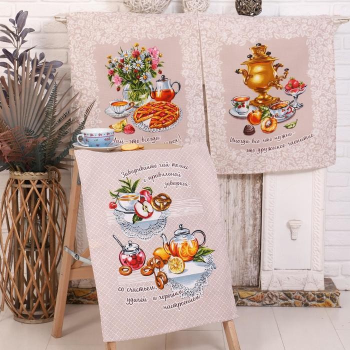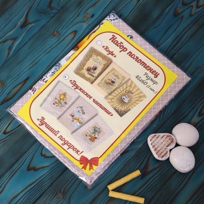 Набор полотенец в пакете Дружеское чаепитие 45×60 см, 3 шт, вафля, 170 гр/м2, хлопок 100%