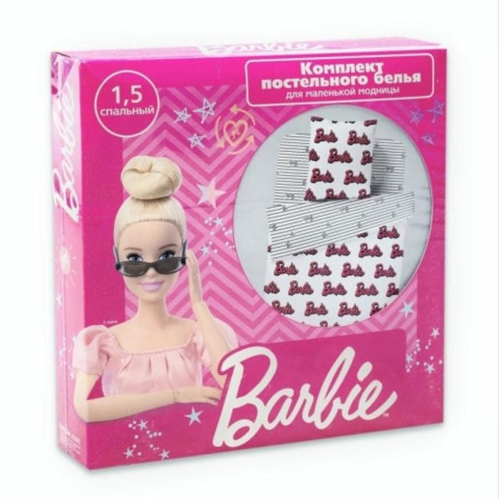 Постельное бельё 1,5сп Barbie белоземельный 145×215, 150×215, 70×70 см-1шт