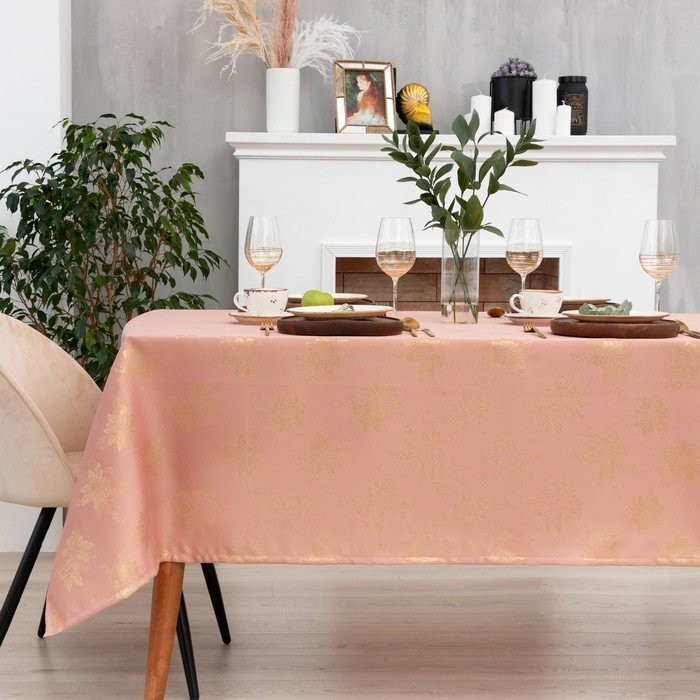 Скатерть Этель «Пуансеттия» цв.розовый, 142*283 +/-3 см, 115 ±10 гр,100% п/э