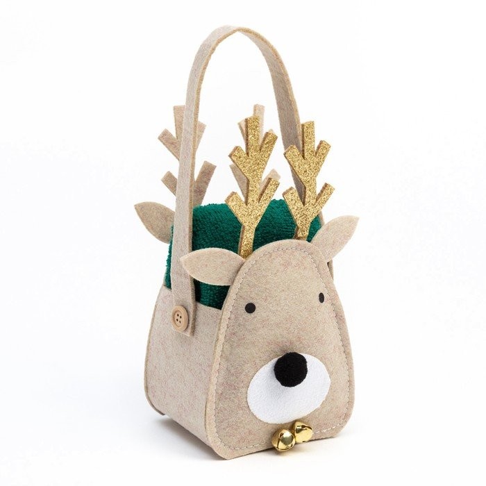 Полотенце в корзинке Экономь и Я «Олень» 30*60 см, цв. изумрудный, 100%хл, 320 г/м2