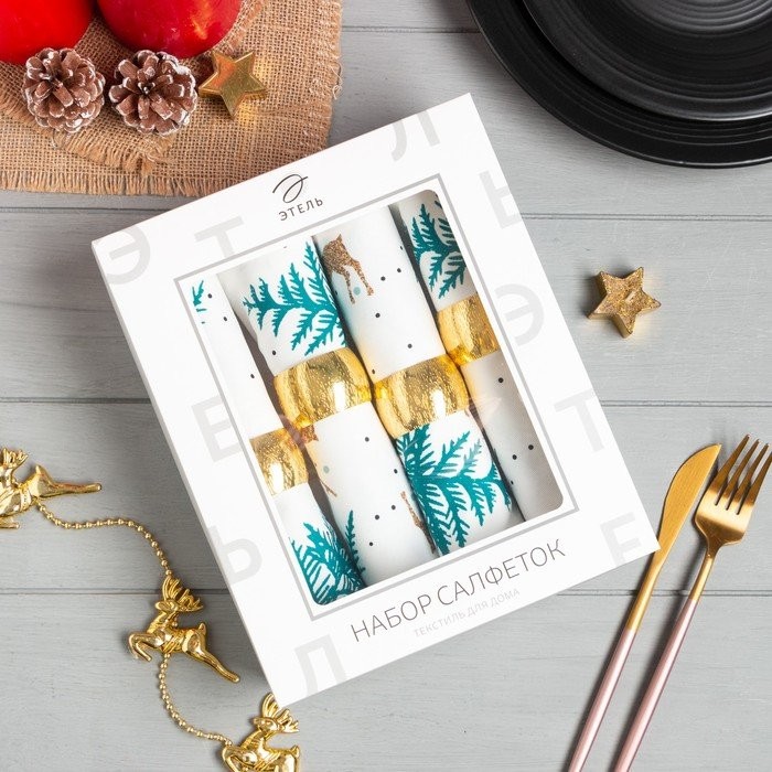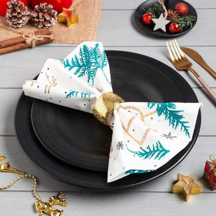 Набор салфеток с декорат. кольцами «Magic Winter» 45х45см — 4 шт, 100% хл, саржа 190гр/м2