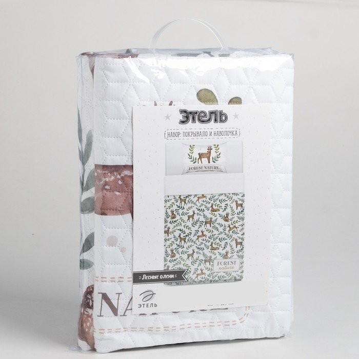 Покрывало детское и наволочка Этель 1,5 сп, «Лесные олени», 145×210 см, 40×60 см, микрофибра
