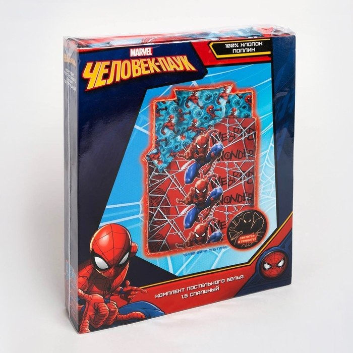 Постельное бельё 1.5сп Человек Паук Neon «Паутина» 143×215, 150×214, 70×70−1шт, поплин 105г/м хл100%