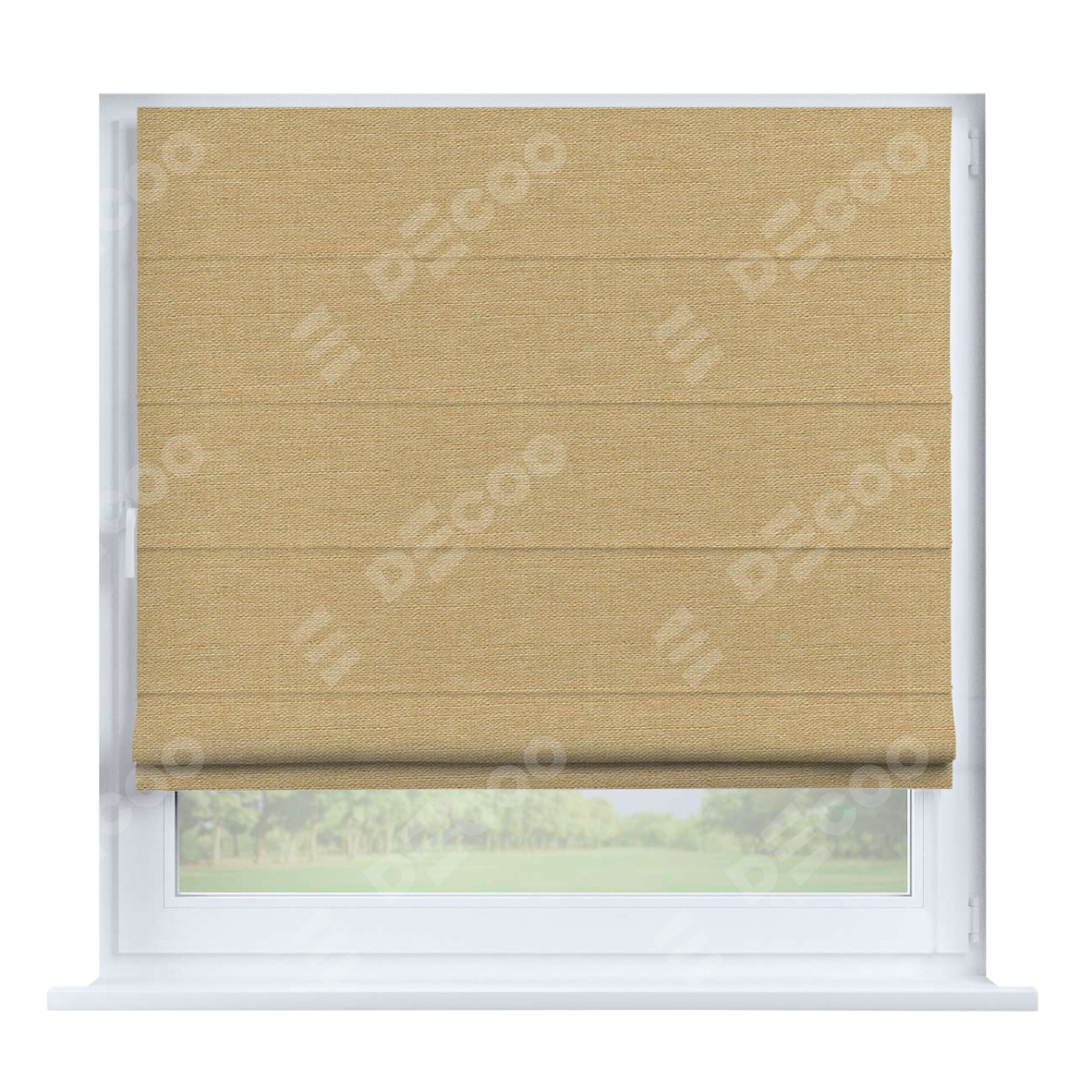 Римская штора производителя «Cortin», устанавливается на створку окна, пошита из ткани лён тёмно-бежевый, артикул 53433. Штора шьётся по индивидуальным размерам, для данного типа римской шторы возможная ширина от 35 до 150 см., высота до 250 см.