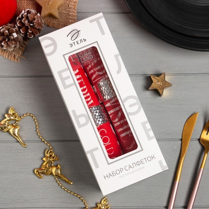 Набор салфеток с декорат. кольцами «Happy holidays» 45×45 см — 2 шт, 100% хл, саржа 190гр/м2