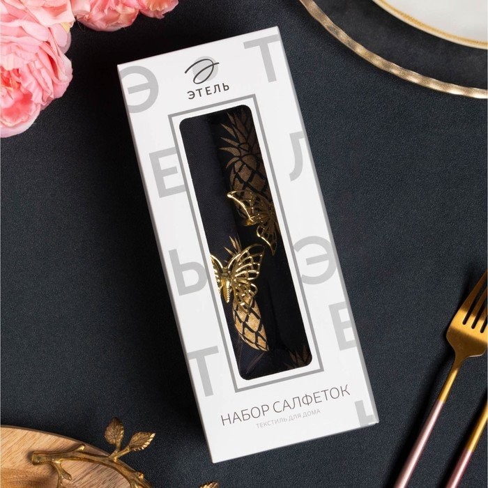 Набор салфеток с декорат. кольцами «Golden pineapple» 46×46 см — 2 шт,100% хл, саржа 190гр/