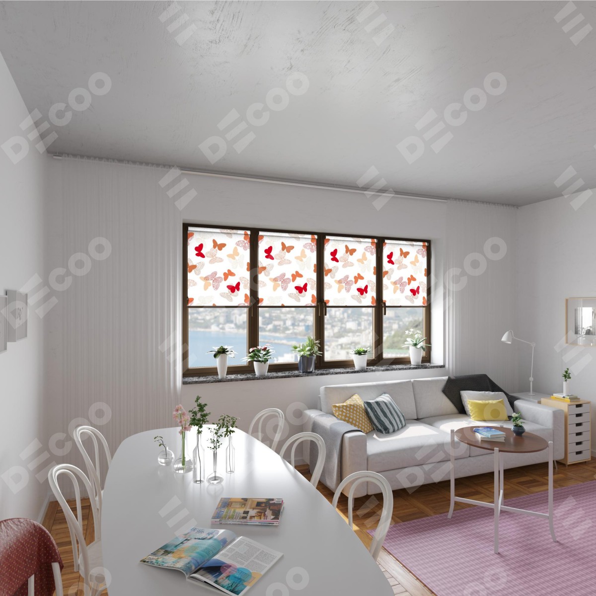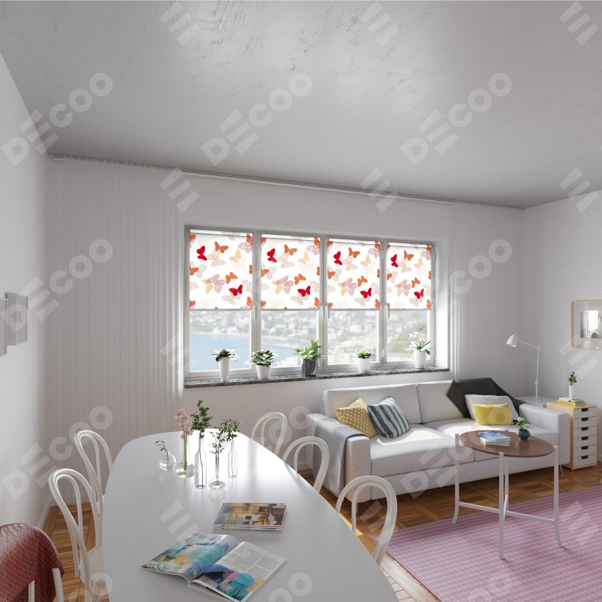 Рулонная штора Мини Бабочки 03 отлично подойдёт для интерьера: детская, для беседки и офис.