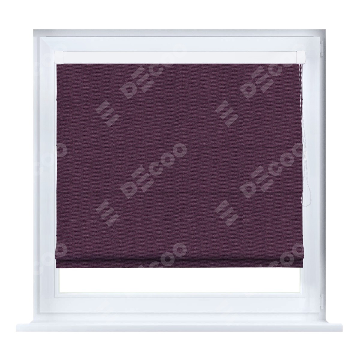 Римская штора кассетного типа, производителя «Cortin», устанавливается только на пластиковые окна и прилегает к стеклопакету, пошита из ткани лён димаут фиолетовый, артикул 8817.