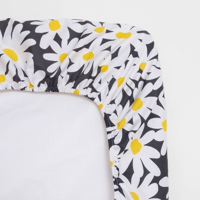 Простыня на резинке LoveLife 180*200*25см, «Ромашки», 100% хлопок, сатин, 125г/м²