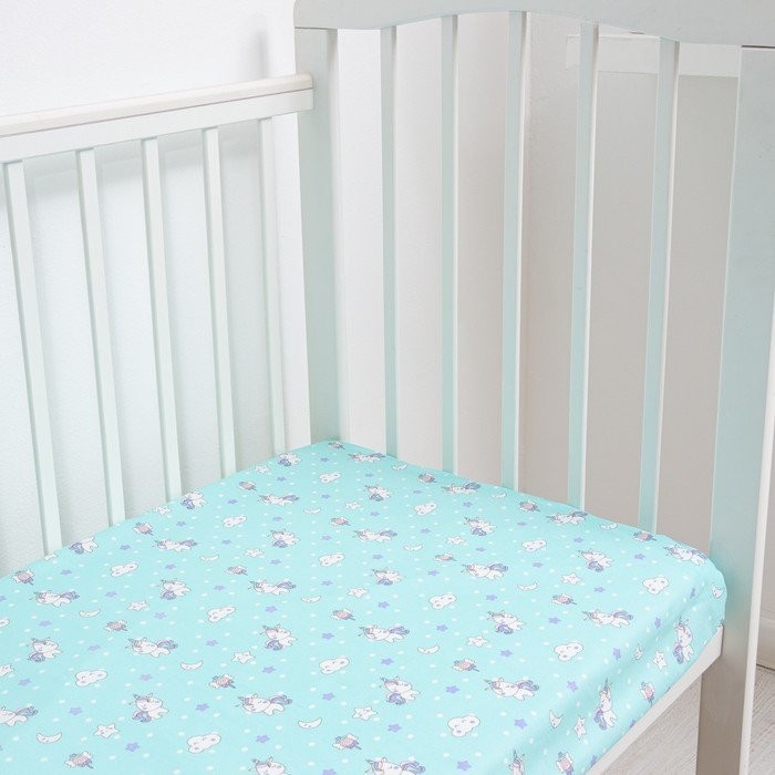 Постельное бельё детское «Единорожки», цвет бирюзовый, 112×147, 100×150, 40×60 1 шт, бязь, хл100 120 г/м