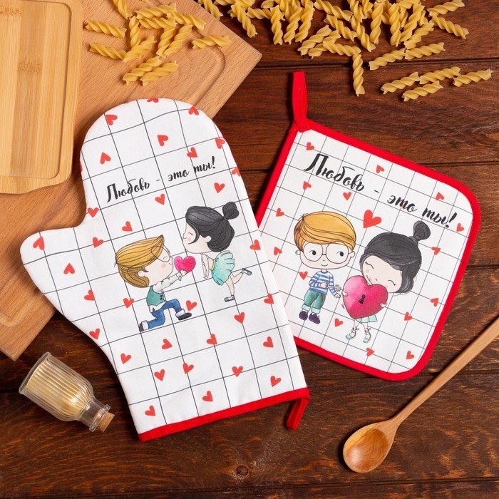 Набор Кухонный «Любовь — это ты», варежка-прихватка 20х28см, прихватка 19х19см, 100% хл