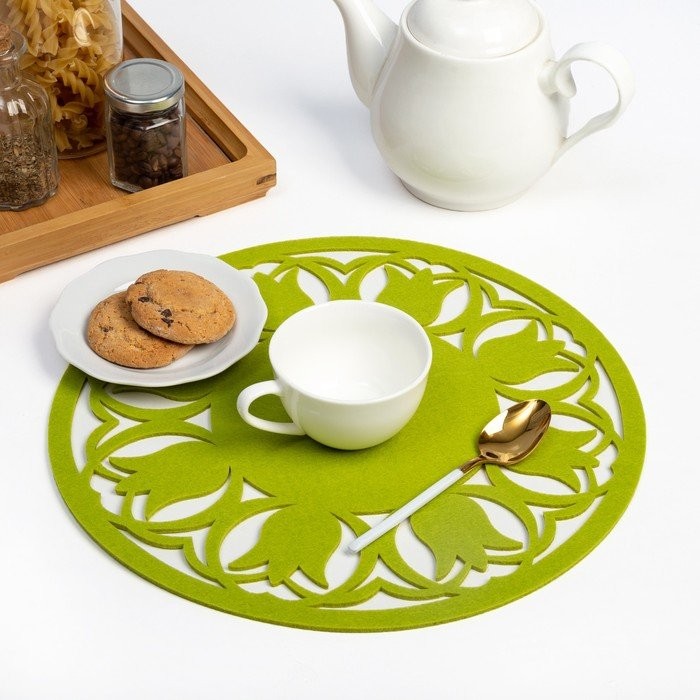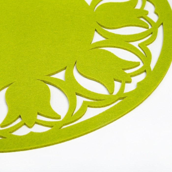 Салфетка декоративная Доляна"Тюльпаны» цвет зеленый, d 30 см, 100% п/э, фетр