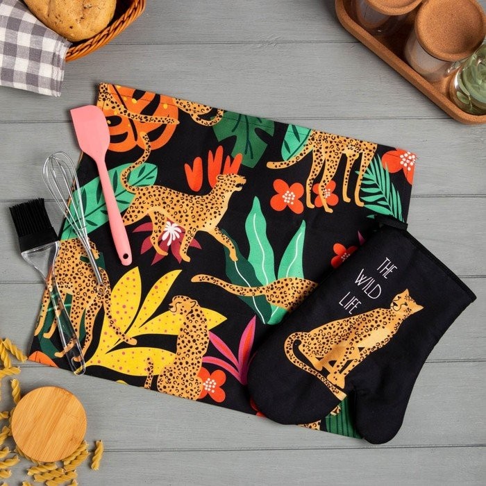 Набор подарочный The wild life: полотенце, варежка-прихватка, кисть, лопатка, венчик