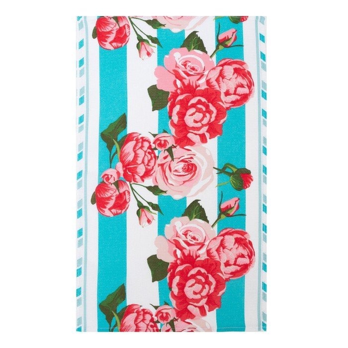Полотенце 35×60 см, Полоса, бирюза, вафля, 160 гр/м2, хлопок 100%