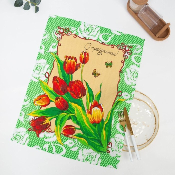 Полотенце в коробке 45×60 см, С праздником, салатовый, вафля, 160 гр/м2, хлопок 100%