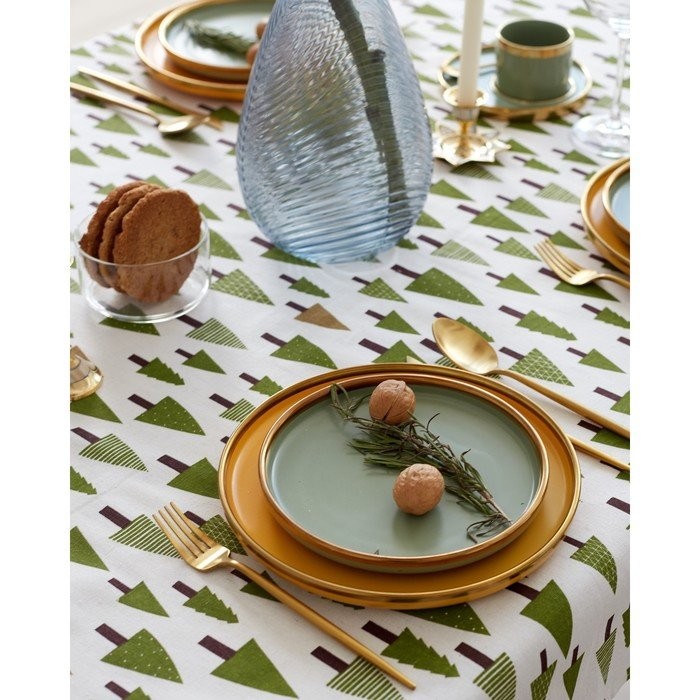 Набор Доляна скатерть 145х200см/салфетки 40х40см 4шт, Хвойный лес, 100%пэ, рогожка 200 гр/м
