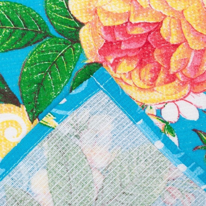 Полотенце 45×60 см, Английская роза, бирюза, вафля, 160 гр/м2, хлопок 100%