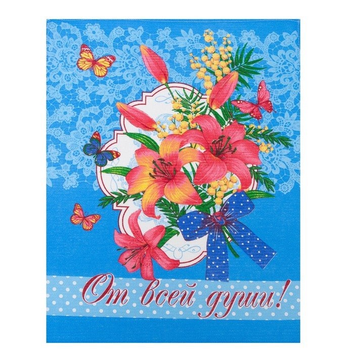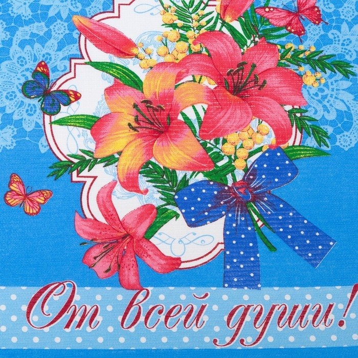 Полотенце 45×60 см, Лилия, голубой, вафля, 160 гр/м2, хлопок 100%