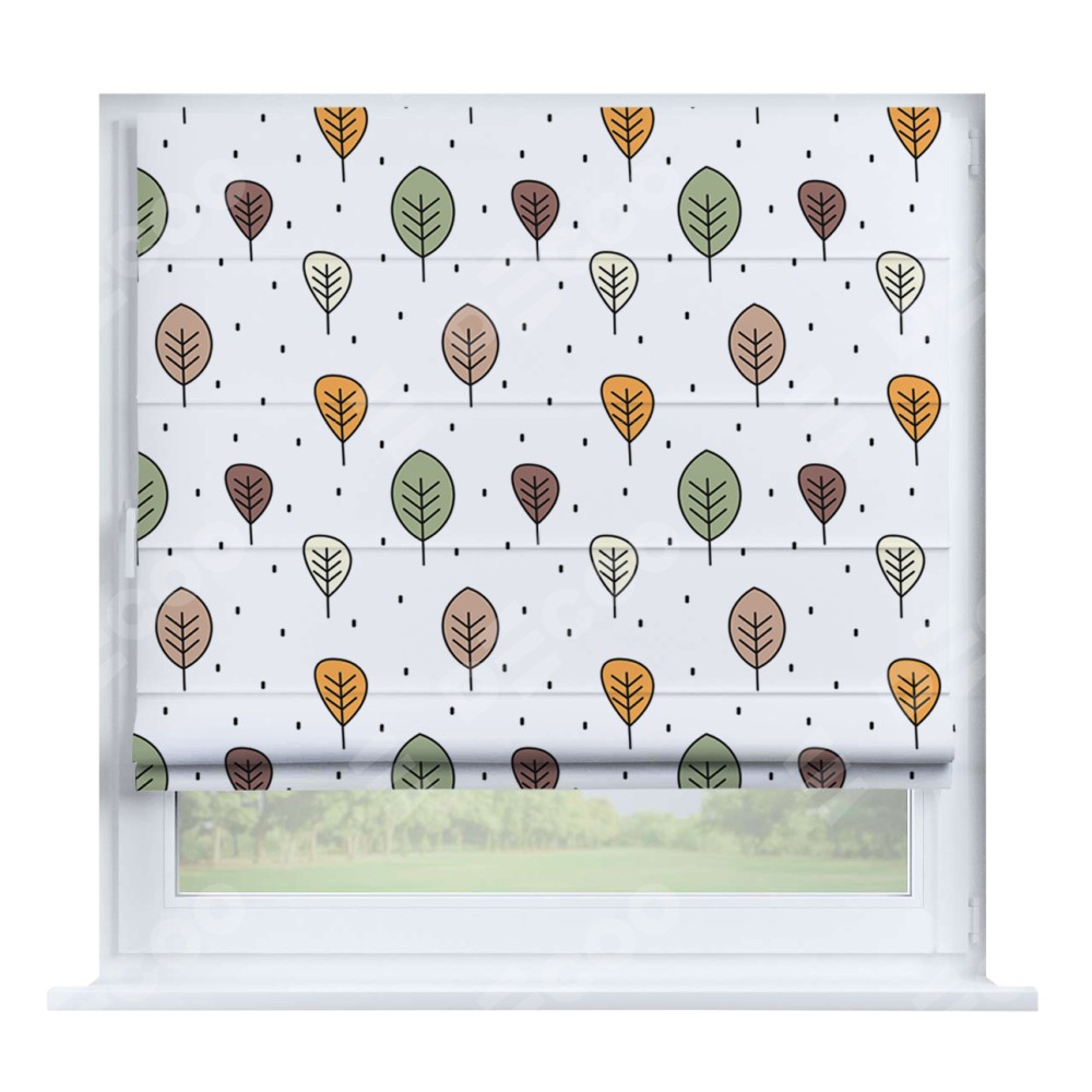 Римская штора производителя «Cortin», устанавливается на створку окна, пошита из ткани блэкаут с нанесением сублимационной печати «Простые деревья». Штора шьётся по индивидуальным размерам, для данного типа римской шторы возможная ширина от 35 до 150 см., высота до 250 см.
