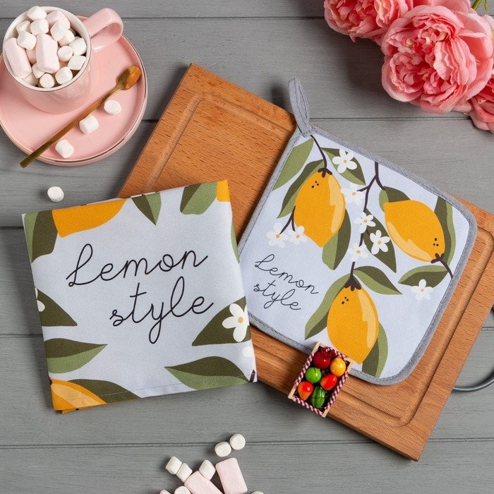 Набор подарочный «Лимонный стиль» полотенце 40х73см, прихватка 19х19см, магнит 11х7см