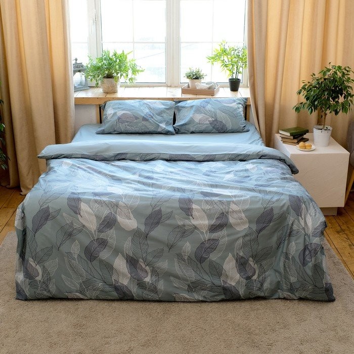 Постельное бельё Этель 2 сп Mint leaves, пододеяльник 175×215 см, наволочки 50×70 см 2 шт, 100% хлопок